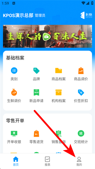 1、打開店務(wù)通APP,點擊右下角我的,進入個人頁面。