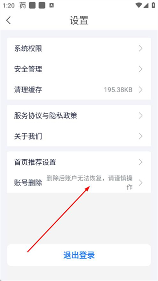3、在設(shè)置界面點(diǎn)擊賬號(hào)刪除,進(jìn)入刪除賬戶流程。