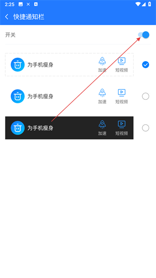 4、在快捷通知欄頁(yè)面,點(diǎn)擊開(kāi)關(guān)右側(cè)的按鈕。