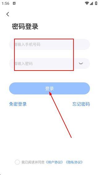 4、輸入手機號碼和密碼,點擊登錄即可完成賬號登錄。