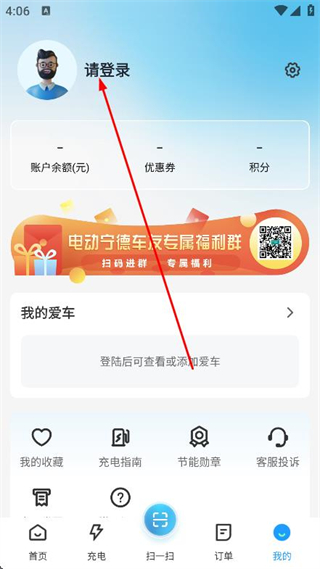 1、打開電動寧德,點擊底部導(dǎo)航欄我的選項。
