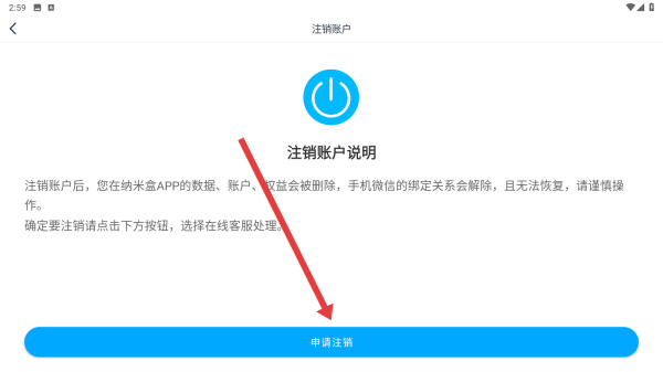 3、在跳轉(zhuǎn)到注銷賬戶頁面后,點擊申請注銷按鈕開始注銷。