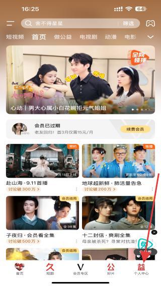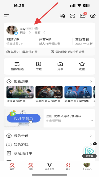 2、在個人中心頁面內(nèi),點擊會員的標識。