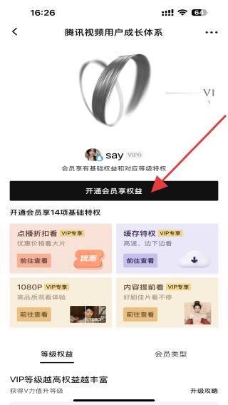 3、進入用戶成長體系的界面,點擊開通會員享權(quán)益的功能按鈕。