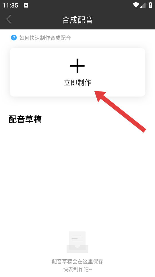 2、在合成配音頁(yè)面,點(diǎn)擊立即制作,進(jìn)入普通配音編輯的界面。