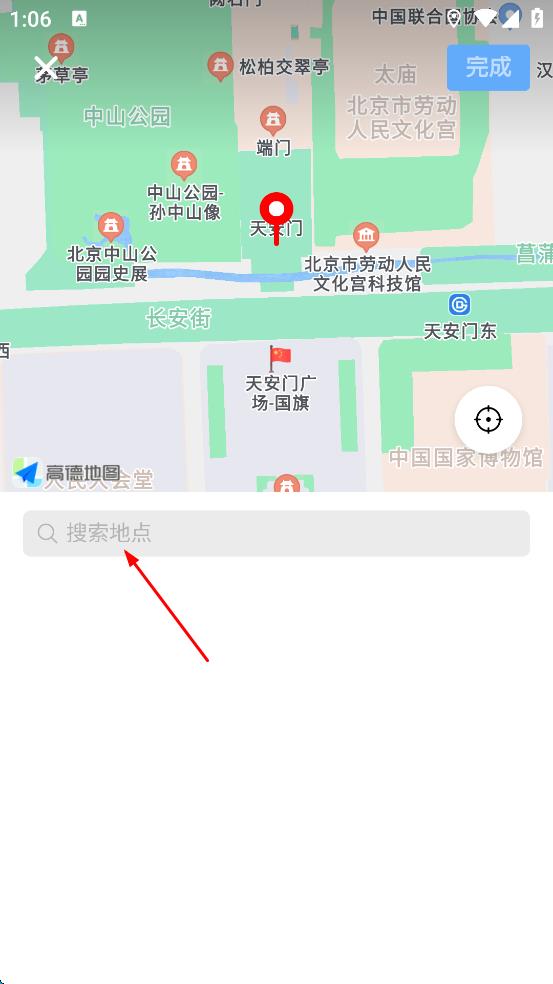 3、進入地圖頁面后,點擊“搜索地點”輸入框,輸入要設(shè)置為家的地點相關(guān)信息。