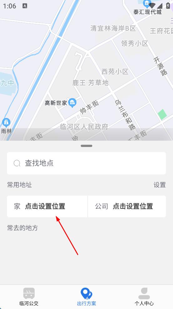 2、在“出行方案”頁面,點擊家點擊設(shè)置位置選項。