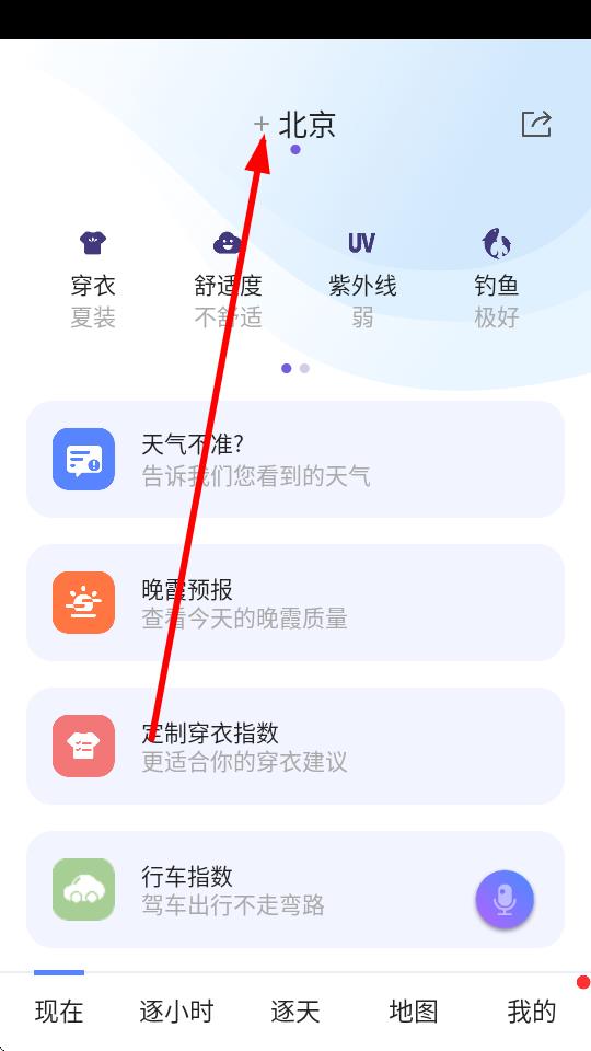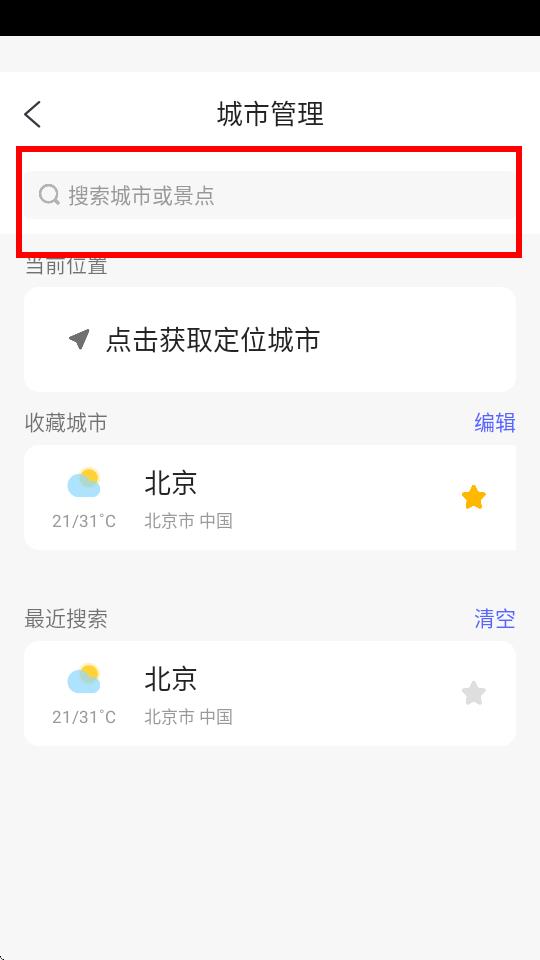 1、在天氣應用首頁,點擊上方添加位置進入城市管理頁面。