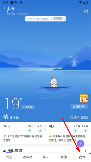 1、在中國天氣app天氣頁面點擊我的選項,進入個人頁面。
