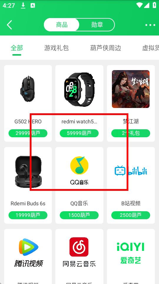 3、在禮物兌換中心的商品列表中,選擇想要兌換的商品,比如QQ音樂權(quán)益。