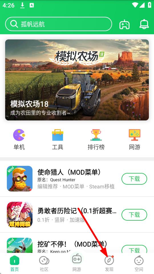 1、打開葫蘆俠應(yīng)用,點(diǎn)擊底部導(dǎo)航欄中的發(fā)現(xiàn)選項(xiàng),進(jìn)入發(fā)現(xiàn)頁面。