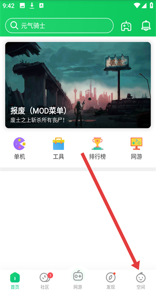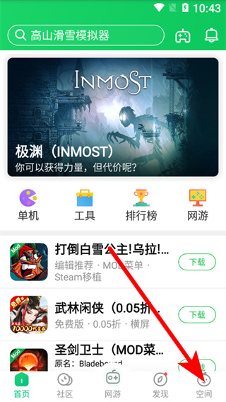 1、在葫蘆俠首頁,點(diǎn)擊右下角空間選項(xiàng),進(jìn)入個人空間頁面。