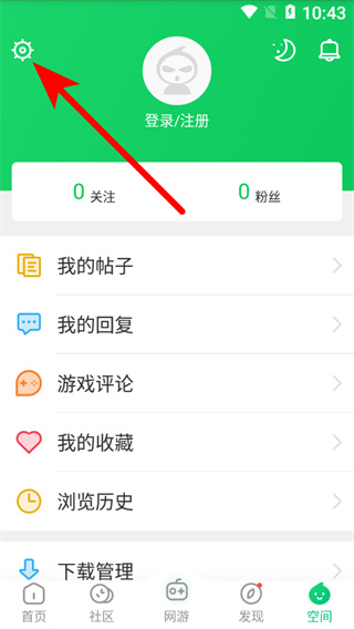 2、在個人空間頁面,點(diǎn)擊左上角設(shè)置圖標(biāo),進(jìn)入設(shè)置界面。