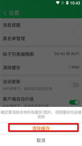 3、在設(shè)置界面,點(diǎn)擊清除緩存選項(xiàng),進(jìn)入緩存清除確認(rèn)頁面。