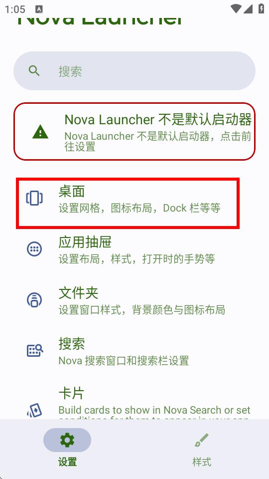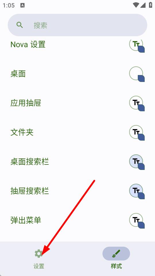 1、打開Nova啟動器設(shè)置界面,點擊底部的設(shè)置按鈕。