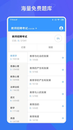 主要包含教師招聘考試和教師資格證考試題庫。教育綜合知識點眾多,覆蓋面廣。