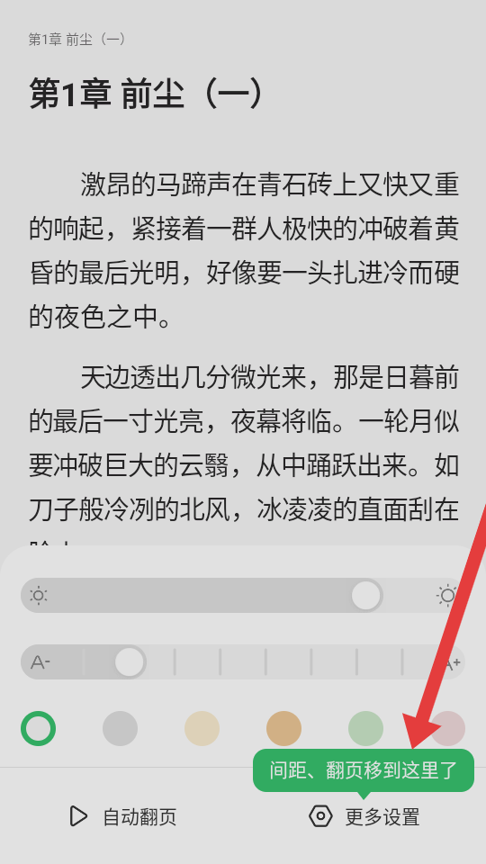 2、在小說設(shè)置的界面中,需要繼續(xù)點擊更多的設(shè)置,進入包含翻頁動畫等功能的設(shè)置頁面。