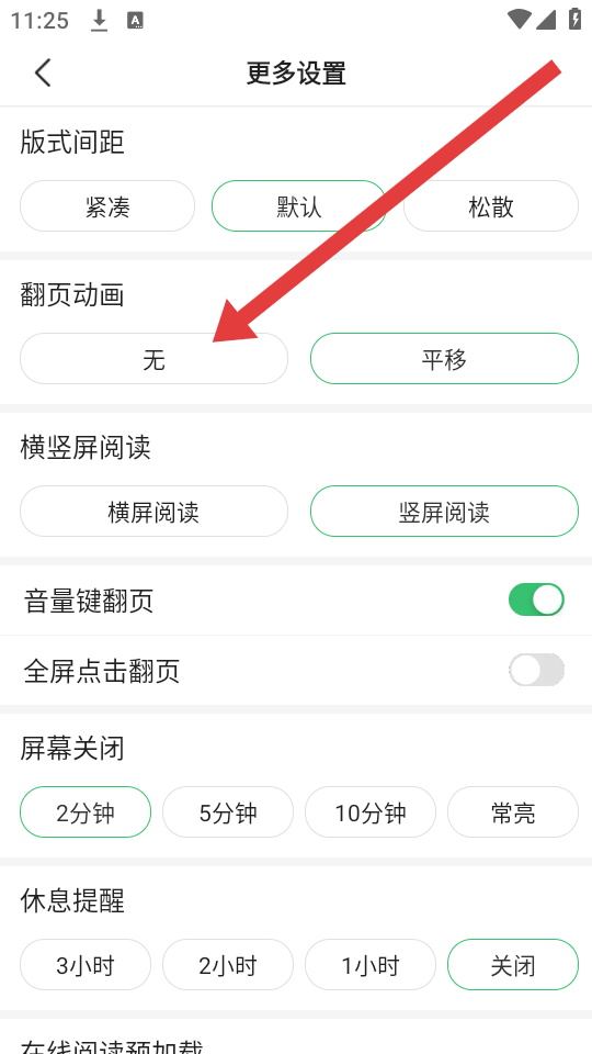 3、在更多設(shè)置里,找到翻頁動畫選項,選擇對應(yīng)上下滑動的模式如部分場景下設(shè)置翻頁動畫為無或特定選項實現(xiàn)。