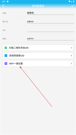 2、進(jìn)入添加攝像機的頁面內(nèi),點擊下方WiFi一鍵設(shè)置。