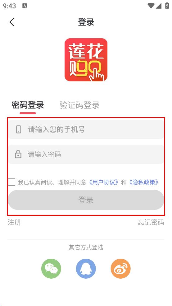4、在登錄頁面,選擇密碼登錄方式,依次輸入手機號碼、密碼,勾選同意相關協(xié)議,點擊登錄按鈕。