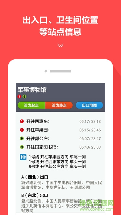 - 專業(yè)運(yùn)維團(tuán)隊(duì)更新地鐵信息,包括線路圖,站點(diǎn)信息、出口信息、衛(wèi)生間信息、首末車時(shí)間、出口地圖等;