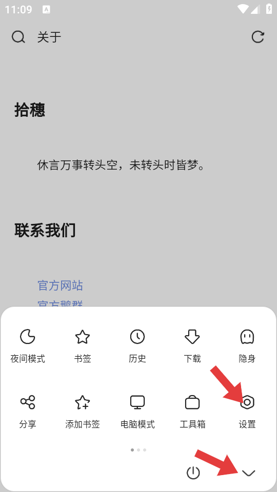 1、在Via瀏覽器界面,點(diǎn)擊底部功能欄的設(shè)置圖標(biāo),進(jìn)入設(shè)置頁面。