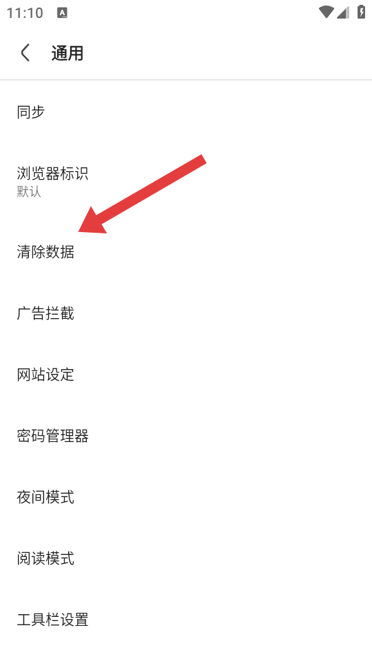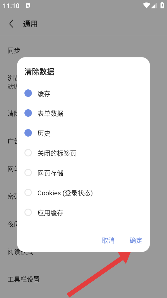 3、在通用設(shè)置界面,點(diǎn)擊清除數(shù)據(jù)選項(xiàng),彈出清除數(shù)據(jù)配置彈窗。