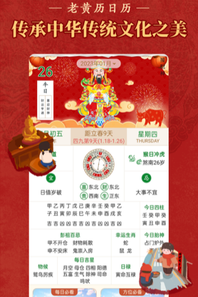 2、傳統(tǒng)黃歷宜忌:關(guān)注每天該做和不該做的事,事事順利!