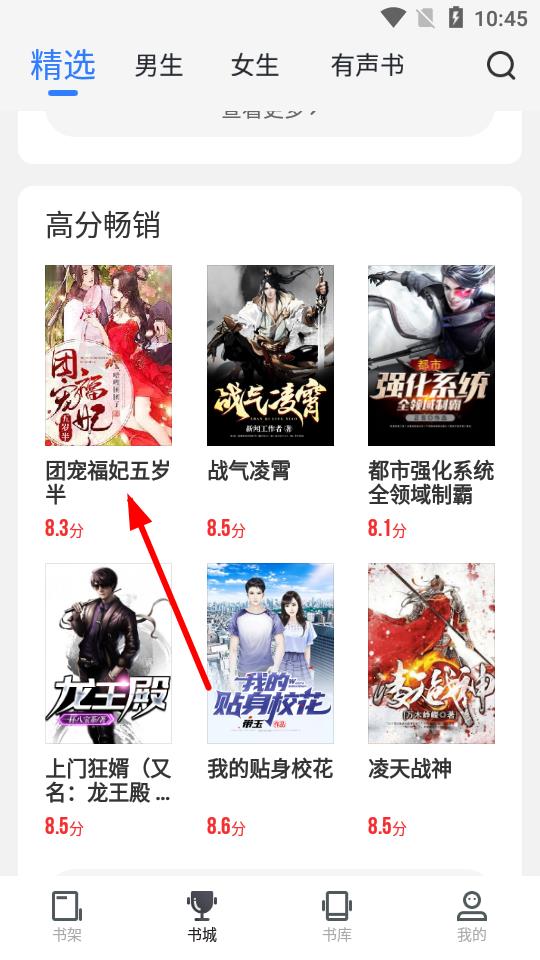 1、打開免費(fèi)追書App,在書城頁面選擇想閱讀的小說,如團(tuán)寵福妃五歲半。
