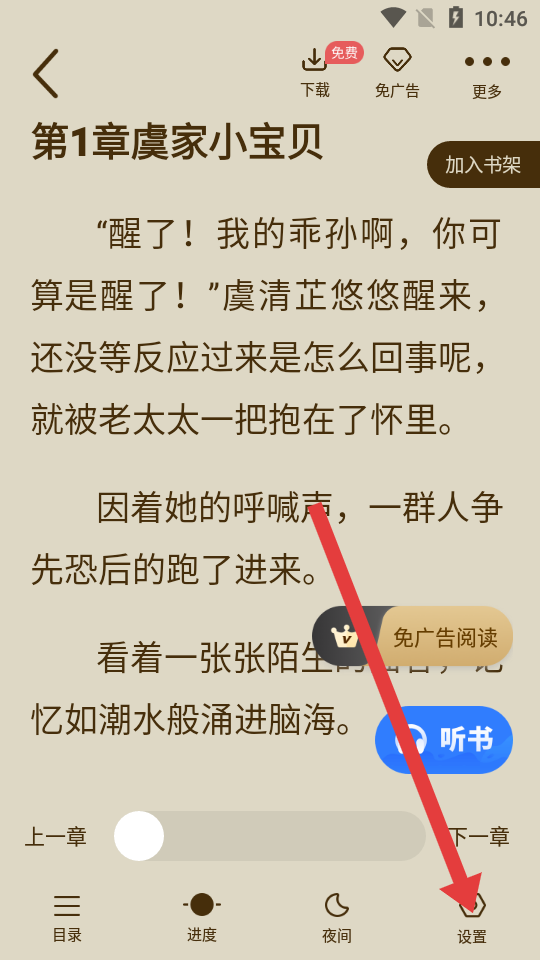 3、在閱讀界面中,點(diǎn)擊底部的設(shè)置圖標(biāo)。