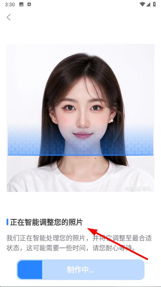 2、從相冊選取需要更換底色的證件照后,等待軟件智能調整照片,耐心等候制作進度。