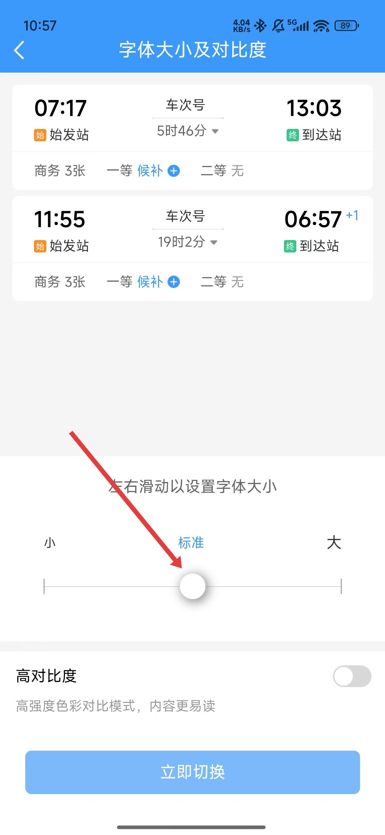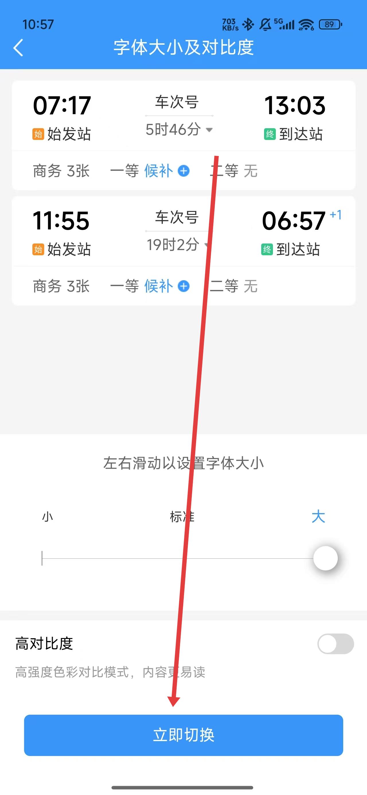 4、在設置好字體大小后,可以點擊立即切換按鈕,完成設置操作。