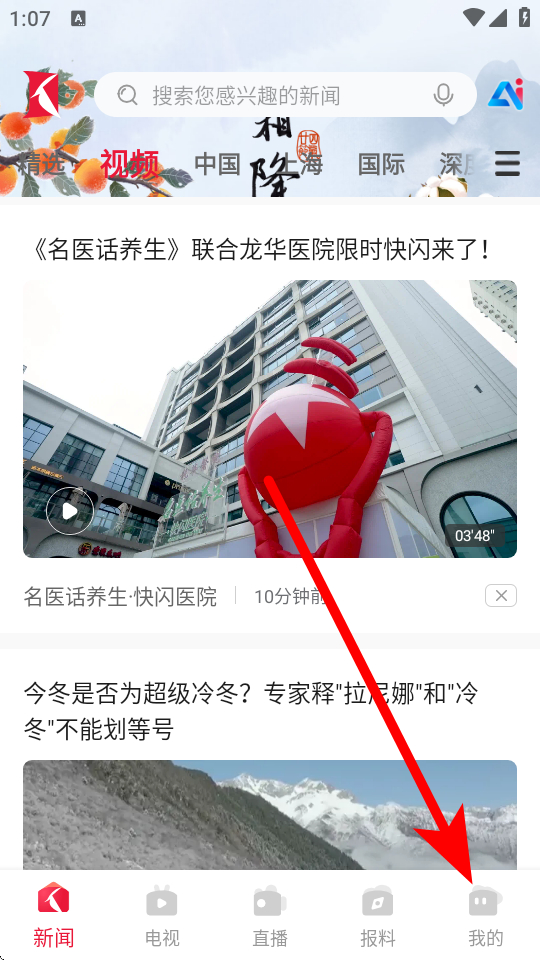 1、在看看新聞app首頁(yè),點(diǎn)擊我的選項(xiàng),進(jìn)入個(gè)人中心頁(yè)面。