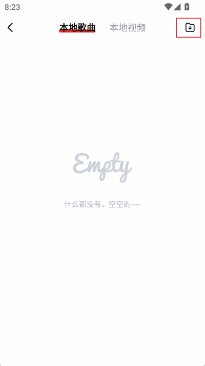 3、點擊后進入本地歌曲功能界面,目前我們這里是沒有導入任何音樂的,點擊右上角的導入按鈕;