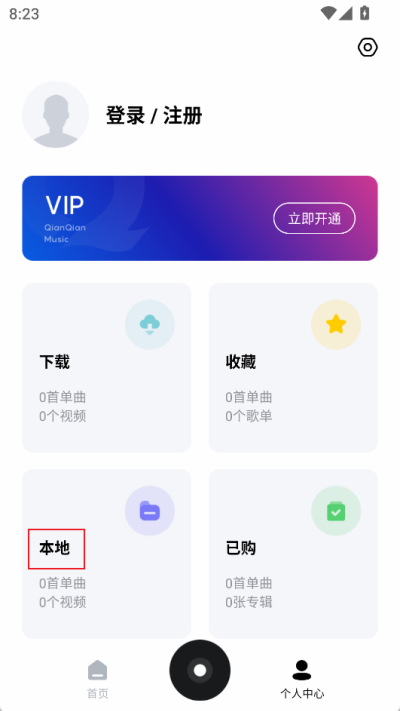 2、點擊后進入個人中心界面,在這里找到下方的【本地】選項并點擊;