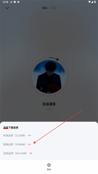 2、點擊歌曲名稱后,再點擊底部唱片的圖標。