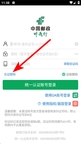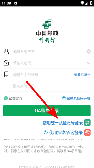 1、打開(kāi)郵我行APP,在登錄界面點(diǎn)擊使用統(tǒng)一認(rèn)證賬號(hào)登錄。