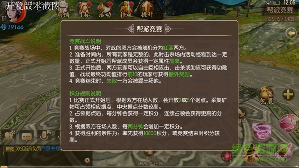 2.準備時間內(nèi),所有玩家是無敵的,此時擊殺場內(nèi)活動怪物到達一定數(shù)量,正式開始后幫派成員會獲得一定屬性加成;
