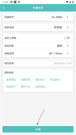 2、設(shè)置機器型號、紙張選擇、紙張列數(shù)、規(guī)格選擇等參數(shù)后,點擊創(chuàng)建。