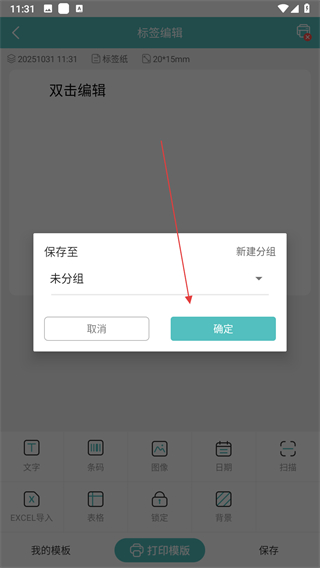 4、在彈出的保存彈窗中,點擊確定按鈕,即可完成新標簽的創(chuàng)建。