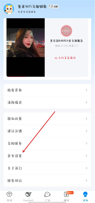 2、在我的頁面,點(diǎn)擊更多設(shè)置選項(xiàng)。
