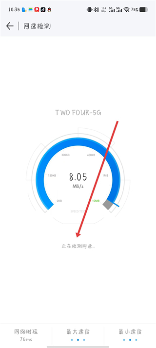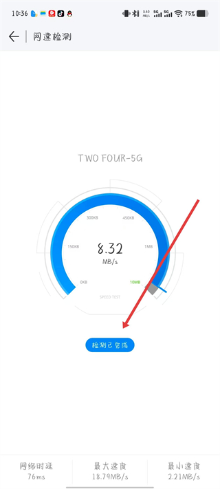 4、完成后,查看網(wǎng)絡(luò)時(shí)延、最大速度、最小速度等數(shù)據(jù)。