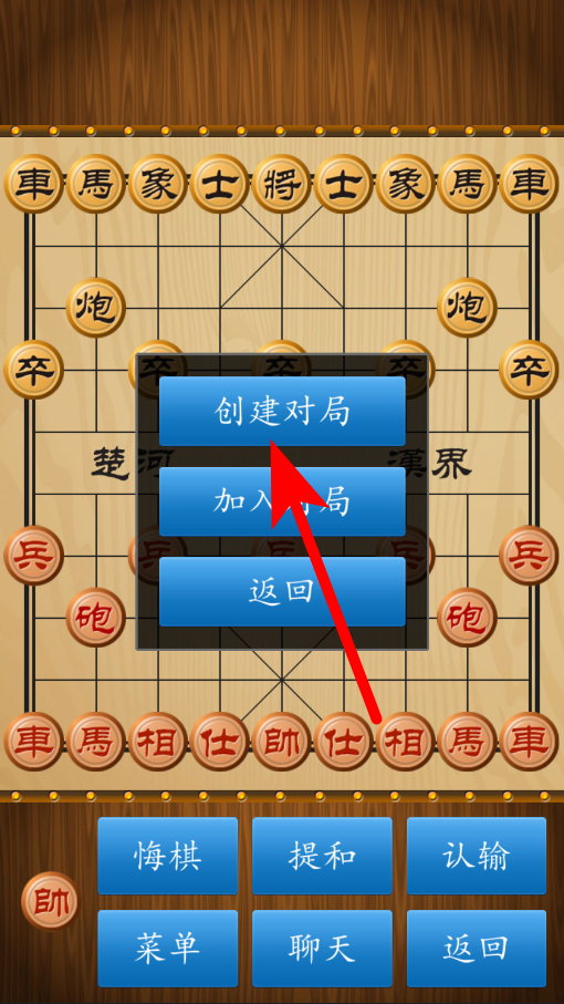 3、在對局相關(guān)操作界面,點(diǎn)擊創(chuàng)建對局選項(xiàng),進(jìn)入創(chuàng)建對局設(shè)置界面。