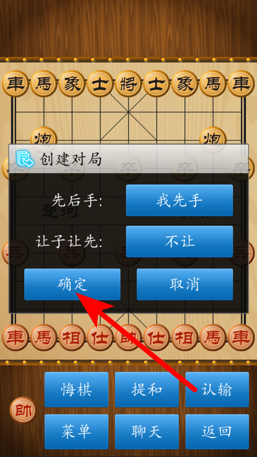 4、在創(chuàng)建對局設(shè)置界面,設(shè)置先后手、讓子讓先等內(nèi)容后,點(diǎn)擊確定按鈕,即可完成聯(lián)機(jī)創(chuàng)建對局操作。