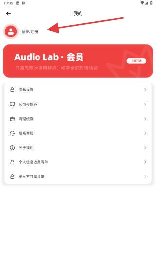 2、進(jìn)入到個(gè)人頁(yè)面內(nèi),點(diǎn)擊登錄/注冊(cè)的按鈕。
