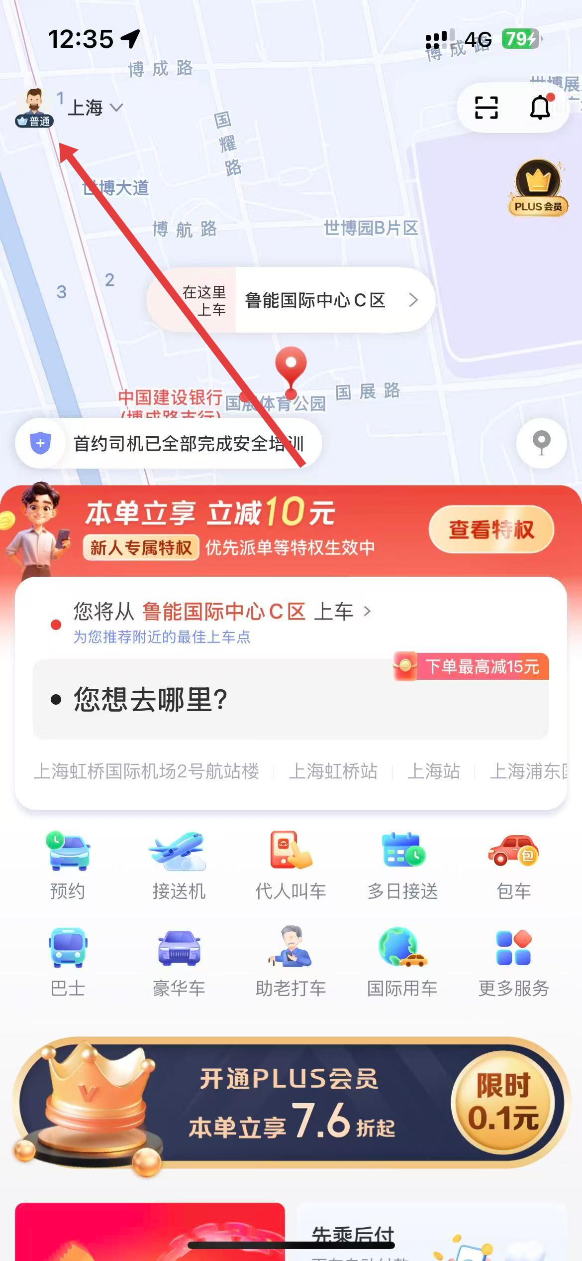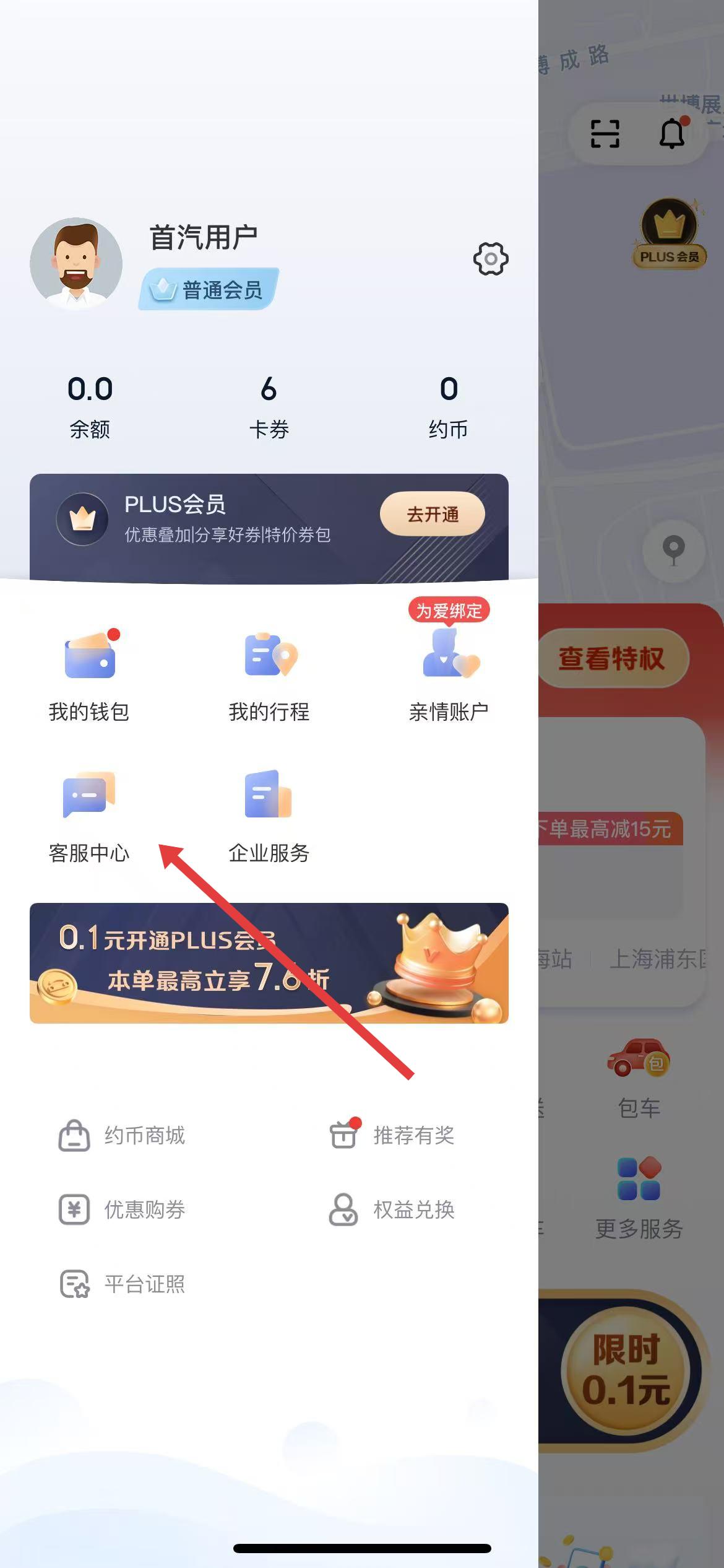 1、打開首汽約車APP,點擊左上角的用戶頭像圖標,進入個人中心頁面。