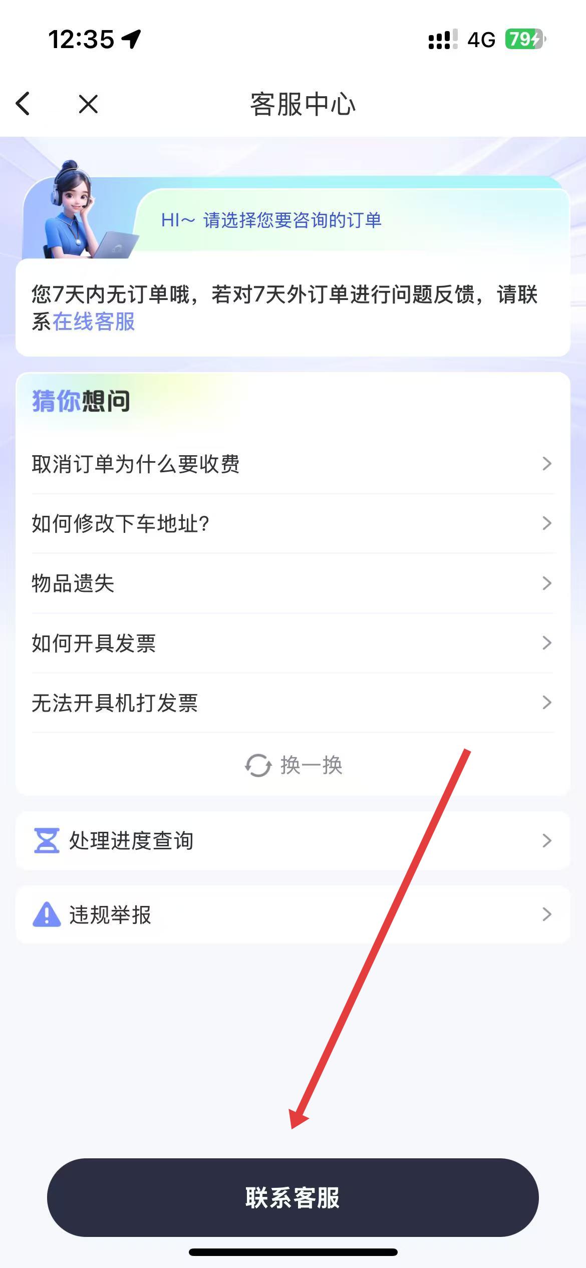 3、在客服中心界面,下拉頁面找到并點擊聯(lián)系客服按鈕,進入在線客服對話窗口。