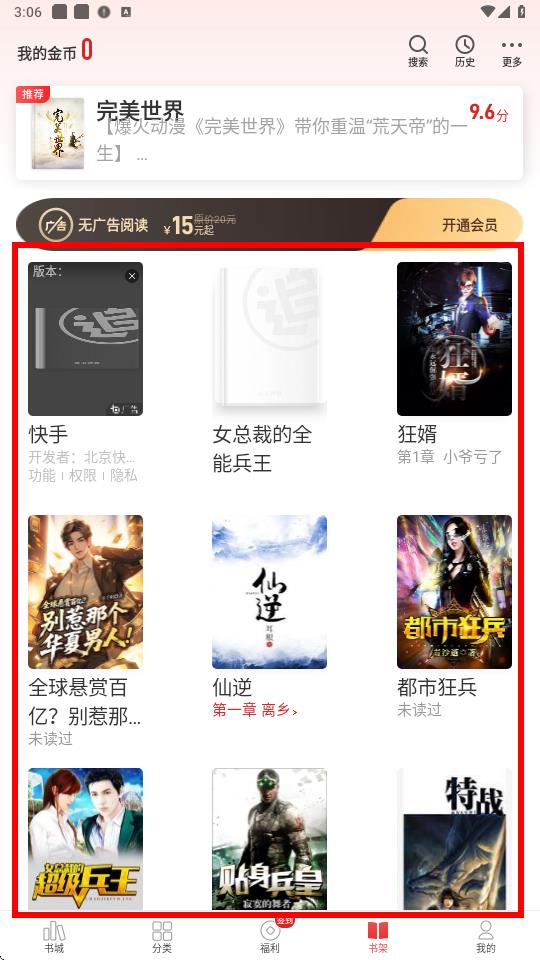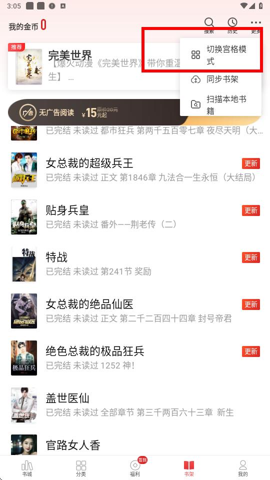 3、選擇后,書(shū)架界面會(huì)切換為宮格模式展示書(shū)籍封面。