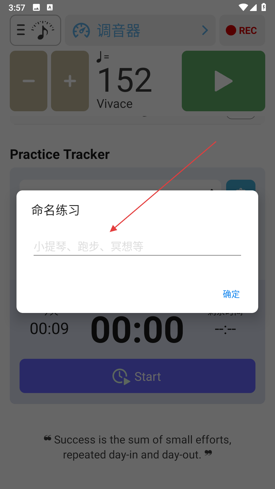 2、點擊Start按鈕后彈出命名練習(xí)窗口,在輸入框內(nèi)輸入練習(xí)項目名稱,輸入完成點擊確定。