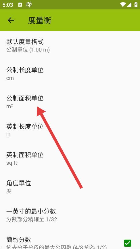 4、在度量衡設(shè)置頁面,點擊公制面積單位選項。